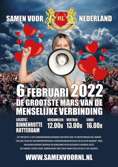 Nederland in verzet organiseert de dag na het truckers convooi op 13 februari een grote manifestatie in Den Haag. De truckers zouden ook aanwezig zijn, maar die zaten nog tot in de avond vast op het parkeer terrein van Ado Den Haag. Main stream media maakt het verhaal dat de truckers hiervoor kozen.